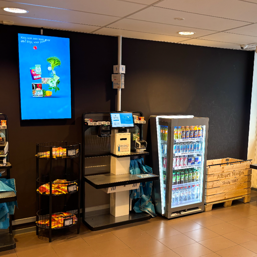 Reclame in Albert Heijn Scheepers is een slimme keuze voor lokale ondernemers die hun zichtbaarheid willen vergroten. De schermen in het kassapark tonen uw advertentie continu aan een groot en gevarieerd publiek. Uw merk wordt herhaaldelijk gezien tijdens het wachten bij de kassa — hét moment waarop klanten écht aandacht hebben.