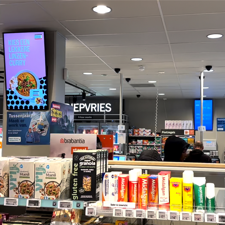 Adverteren op de schermen in Albert Heijn zorgt voor herhaling en herkenning. Bezoekers komen vaker per week, waardoor uw boodschap blijft hangen. Uw bedrijf wordt vertrouwd en als eerste gekozen zodra behoefte ontstaat.